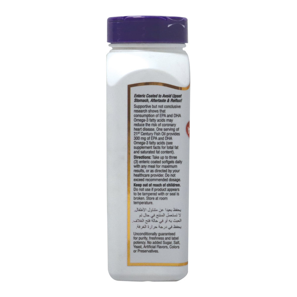 21st Century Fish Oil 1000 mg Enteric Coated Softgels 90's is a premium-grade Omega 3 supplement formulated to support heart health, brain function, joint flexibility, and overall wellness. Sourced from deep ocean fish, each softgel contains a potent dose of EPA (Eicosapentaenoic Acid) and DHA (Docosahexaenoic Acid) – the essential fatty acids your body needs daily. With advanced enteric coating, these softgels ensure optimal absorption and prevent fishy aftertaste, making it the best fish oil supplement in Dubai for both men and women.