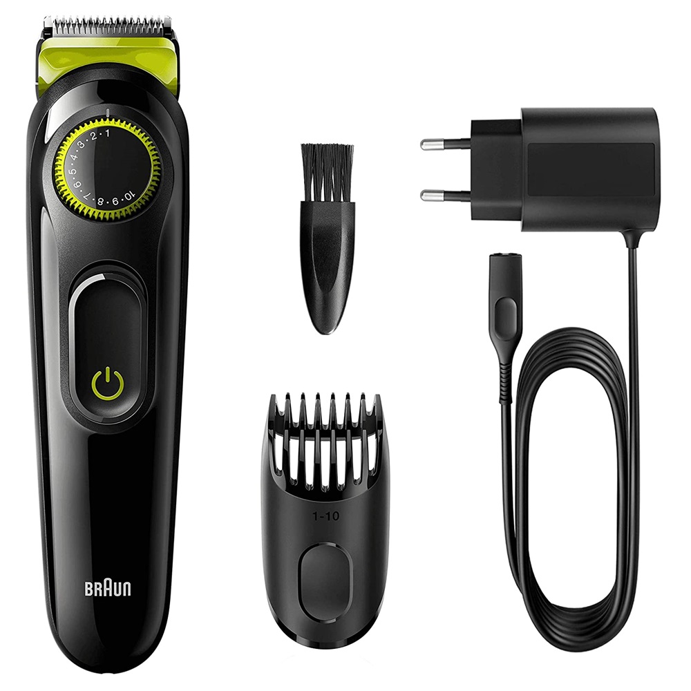 Braun Series 3 Beard Trimmer BT3221 delivers ultimate accuracy for an even cut, the BT3221 features a precision dial with 20 length settings and comes with Lifetime Sharp Blades. Washable trimmer head and comb (device should not be held under water).