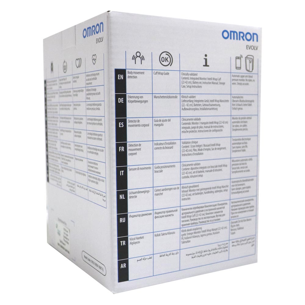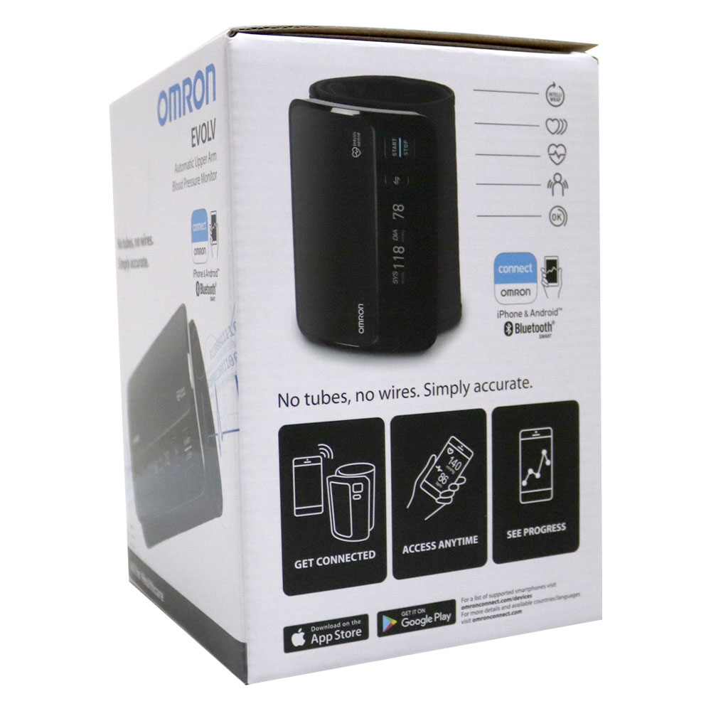Omron Evolv Tubeless Blood pressure Monitor is a digital monitor intended for use in measuring blood pressure and pulse rate in adult population. The device detects the appearance of irregular heartbeats during measurement and gives a warning signal with readings.