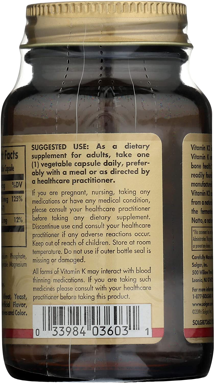 SOLGAR NATURALLY SOURCED VITAMIN K2 (MK-7) 100 MCG 50 VEGITABLE CAPSULES