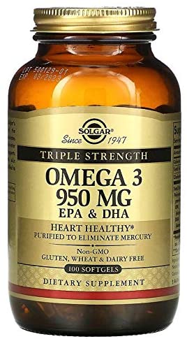 Omega 3 950 is Solgar’s highest concentration of the natural Omega 3 polyunsaturates EPA and DHA from cold-water fish. This formulation supports cardiovascular, joint, and skin health*. It is molecularly distilled to remove mercury.