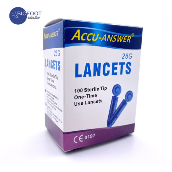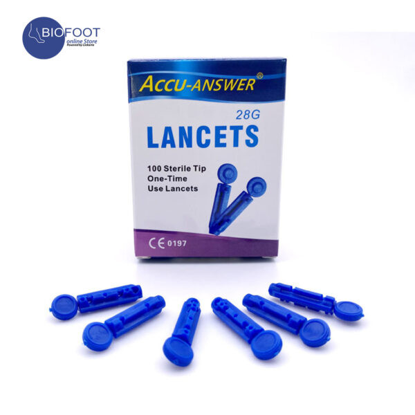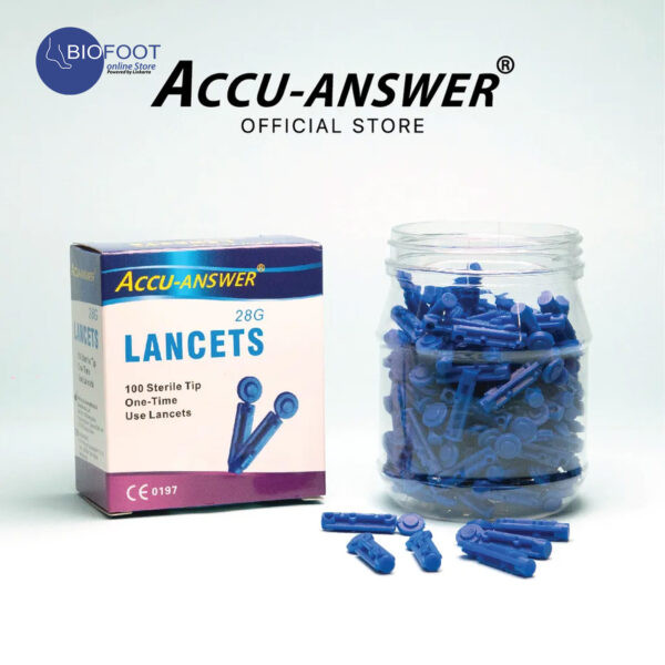 Accu-Answer Blood Lancets, available in a pack of 100, are designed for gentle and sterile blood sampling. These lancets are compatible with various lancing devices, providing a convenient solution for individuals requiring regular blood samples, especially for glucose testing and other diagnostic purposes.