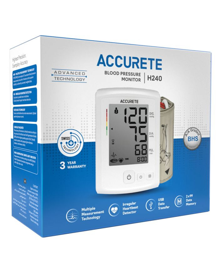 Trusted Source: MediLife is committed to providing quality health monitoring solutions. The Accurete Blood Pressure Monitor H240 is selected for its accuracy and reliability.