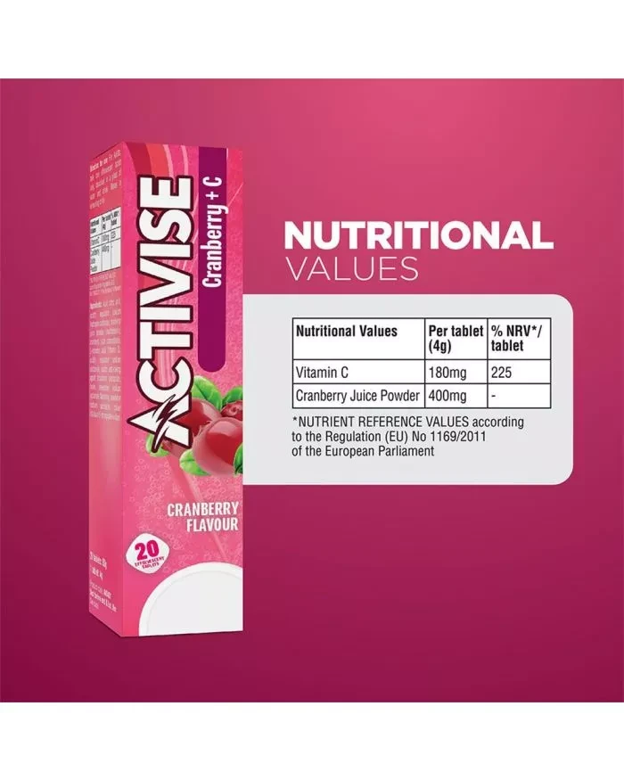 Elevate your well-being with Activise Cranberry + Vitamin C Effervescent Tablets from MediLife – where health meets delight.