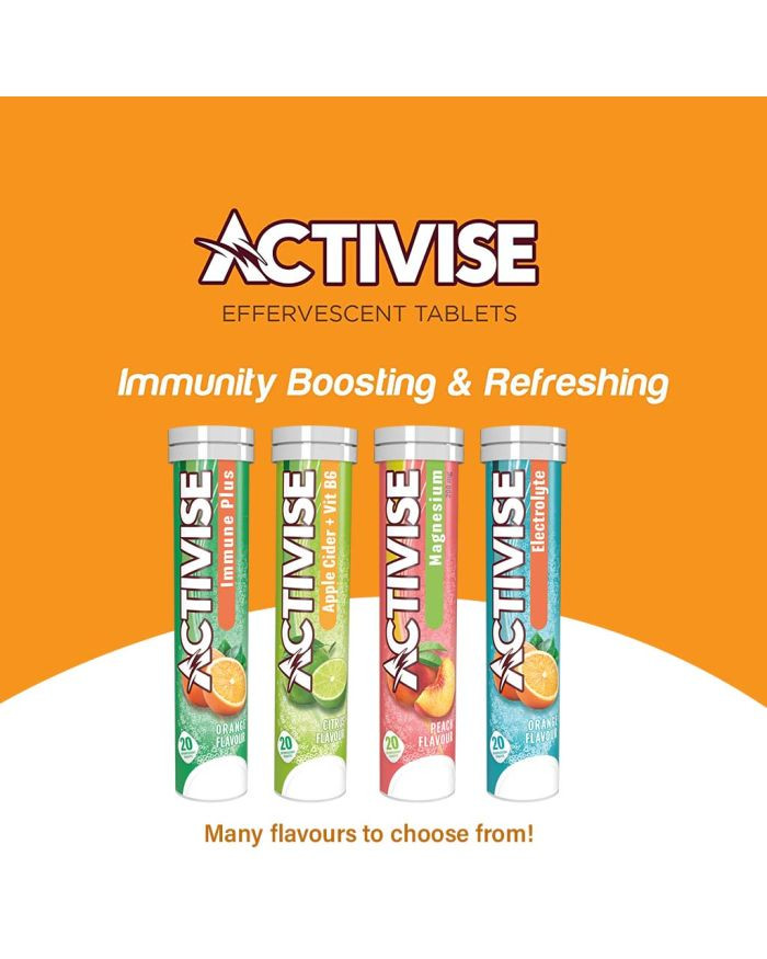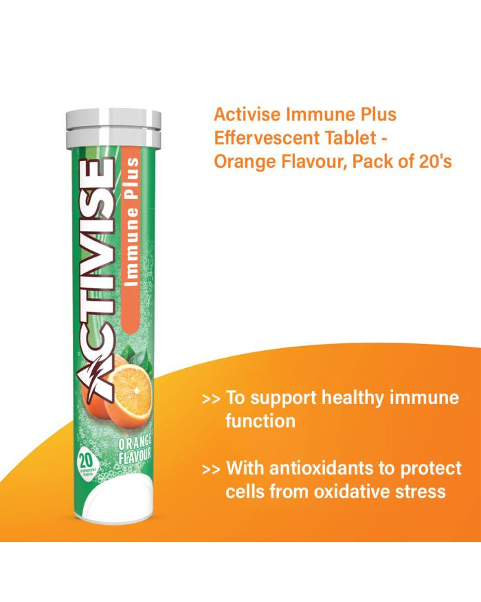 Elevate your defense with Activise Immune Plus Effervescent Tablets. This pack of 20 orange-flavored tablets is a potent blend of immune-boosting ingredients designed to fortify your body's natural defenses. Embrace a daily burst of citrusy wellness with Activise for a robust and vital lifestyle.