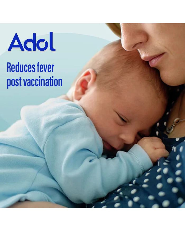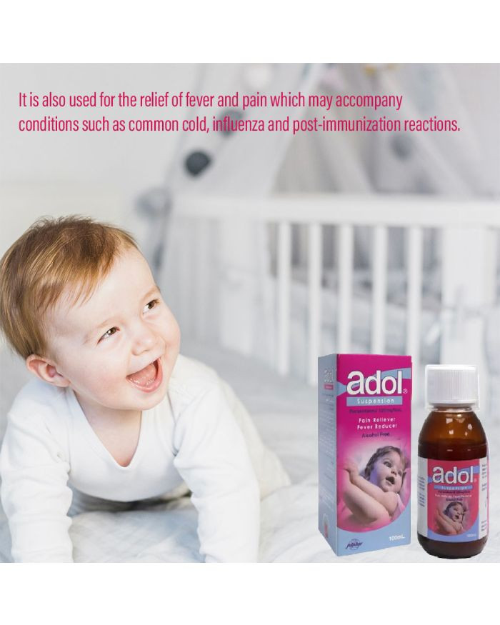 Adol 120 mg/5 mL Suspension contains paracetamol which belongs to a group of medicines called analgesics and antipyretics, which act to relieve pain and reduce fever. It can be used to relieve mild to moderate pain including toothache, teething pain, headache and other pains. It can also be used to relieve the symptoms of colds and flu and to reduce fever, including fever after vaccination at 2 months of age