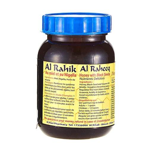 • Versatile Use: AL RAHEEQ HONEY BLACK SEED can be used in multiple ways, such as a natural sweetener, a supplement, or as an ingredient in recipes to enhance flavor and nutritional value.