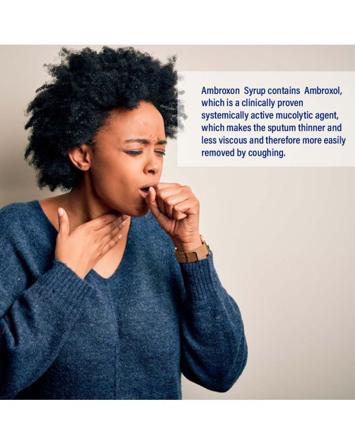 Ambroxon 15 mg/5 ml Syrup contains 30 mg Ambroxol, which is a clinically proven systemically active mucolytic agent, which makes the sputum thinner and less viscous and therefore more easily removed by coughing. Ambroxol breaks up phlegm, used in the treatment of respiratory diseases associated with viscid or excessive mucus.