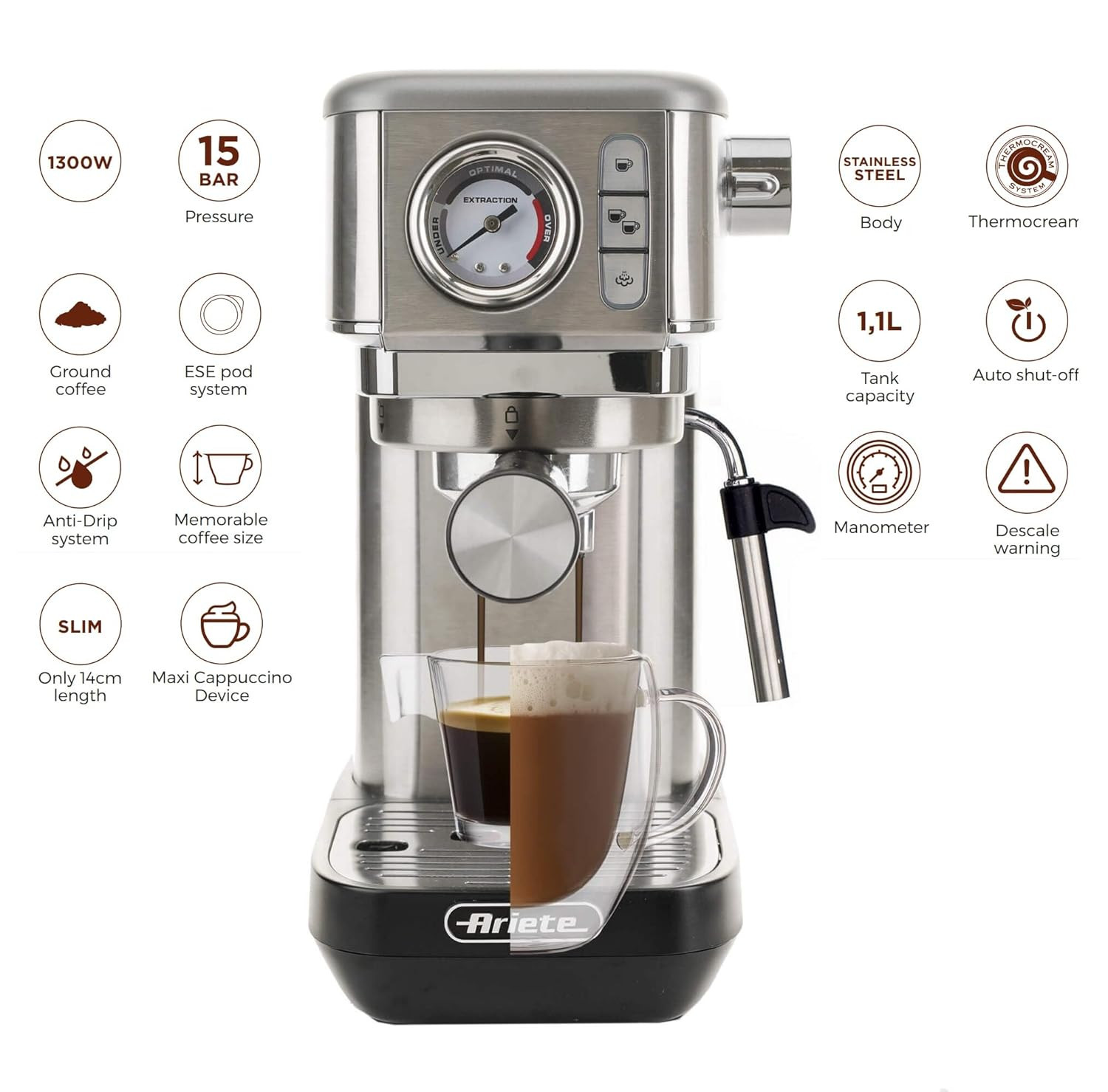 Experience barista-level coffee right in the comfort of your home with the Ariete Pump Espresso Maker 1.1 L.