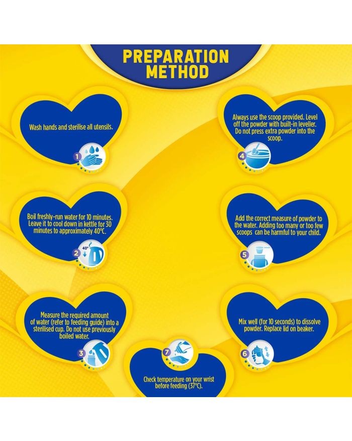 Important: Breastfeeding is best for babies and a healthy diet / maternal nutrition is important when breastfeeding. A decision not to Breastfeed can be difficult to reverse. Infant formula is suitable from birth when babies are not breastfed. It is recommended that all formula milks be used on the advice of a doctor. All preparation and feeding instructions should be followed carefully as inappropriate preparation could lead to health hazards.