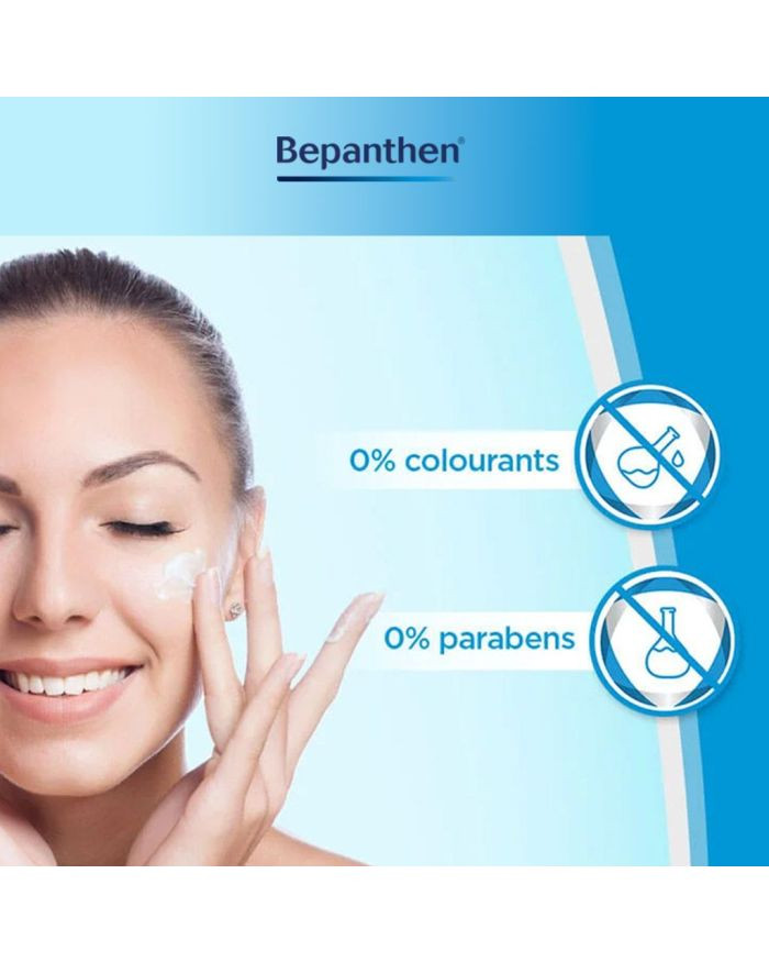 Bepanthen moisturizing cream is used for dry, damaged skin gently aids natural skin recovery, while keeping it soft, smooth, and moisturized. This light formulation swiftly penetrates the skin exposed to drying and damaging environmental factors. Bepanthen cream contains the active substance dexpanthenol, pro-vitamin B5, which is converted in the skin cells into the vitamin pantothenic acid. This active ingredient helps skin to grow, restore its healthy look, and stimulate its regeneration from the inside out. With its highly absorbent, slightly fatty emulsion, and high moisture content, Bepanthen moisturizing cream delivers a soothing effect on irritated skin. Bepanthen moisturizing cream is an effective treatment for many kinds of skin irritations such as redness, sunburn, mild burns, and pressure marks. The discomfort caused by rough and dry patches on your elbows, hands and feet can also be alleviated by the soothing properties of this high-quality moisturizing cream. Bepanthen cream does not contain any perfumes or colors. Scientifically formulated with Pro Vitamin B5, nicknamed the skin vitamin, Bepanthen is at the cutting edge of skin care treatment after 75 years.