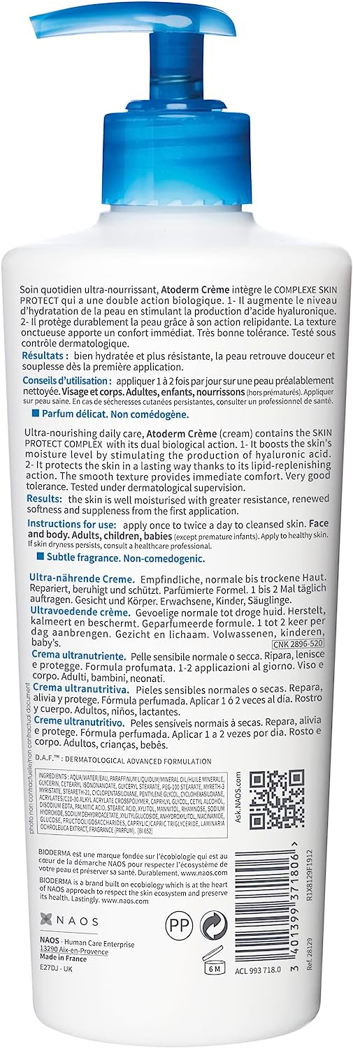These are some of the key ingredients you may find in Bioderma Atoderm Nourishing Cream. Always check the product label for the most up-to-date ingredient list and to ensure it meets your specific skin needs.