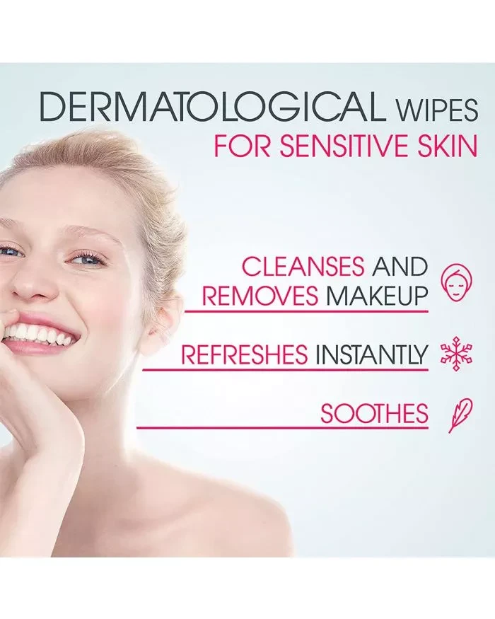 Cleansing and make-up removing dermatological wipes which respects the fragility of sensitive skin