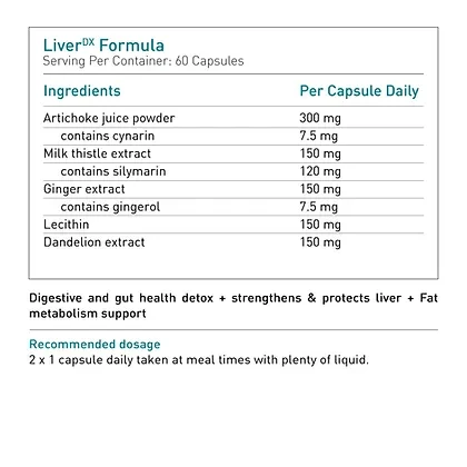 Each capsule contains a proprietary blend of natural ingredients, including Milk Thistle Extract, Dandelion Root Extract, Artichoke Leaf Extract, Turmeric Root Extract, and other beneficial herbs and nutrients.