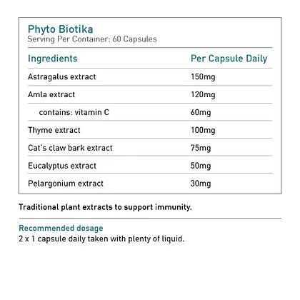 Biogena Phyto Biotika is a premium dietary supplement available in the form of 60 capsules. It features a unique blend of phytonutrients and biotin, designed to support immune health and promote overall well-being. This powerful formula is specially formulated to provide comprehensive support for the body's natural defense mechanisms.