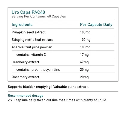 Biogena Uro Caps PAC40 is a premium dietary supplement available in the form of 60 capsules. It features a unique blend of natural ingredients, including PAC (proanthocyanidins), designed to support urinary tract health and promote overall well-being. This powerful formula is specially formulated to provide comprehensive support for the urinary system.