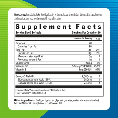 Fish Oil (from anchovies and sardines): 1000mg per softgel
