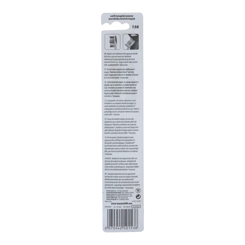 The Butler GUM Travel Soft Toothbrush 158 M is a compact and portable oral care essential designed for on-the-go use. Whether you are traveling, at work, or away from home, this toothbrush ensures effective cleaning with its soft bristles and practical design.