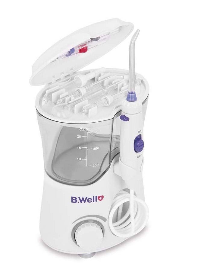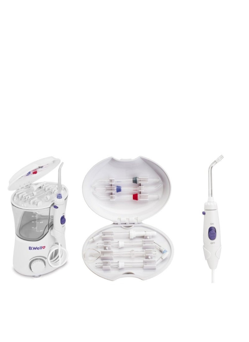 The B.Well Swiss Oral PRO-922 10-Mode Irrigator Counter Top with 7 Nozzles is a high-performance dental care device designed to offer thorough oral hygiene with convenience. Featuring 10 customizable modes and 7 different nozzles, this professional-grade oral irrigator effectively removes plaque, food particles, and bacteria from hard-to-reach areas in your mouth, improving gum health and preventing dental issues. Perfect for families, the PRO-922 provides a superior cleaning experience at home, offering a cost-effective and efficient alternative to traditional flossing.