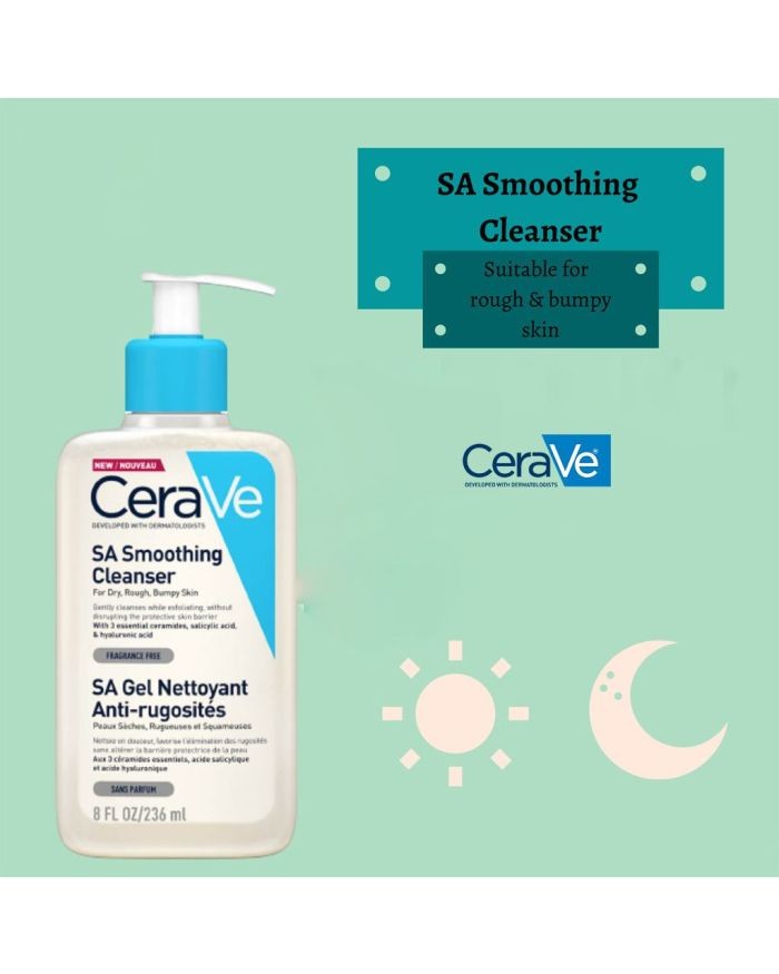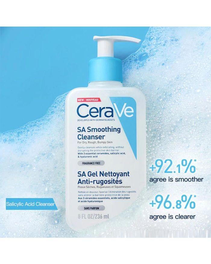 damaging its natural barrier. CeraVe SA Smoothing Cleanser helps to protect the