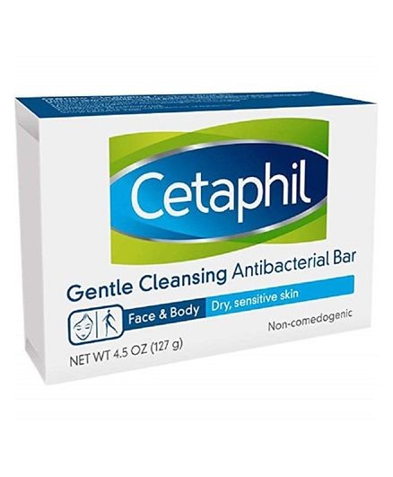 Cetaphil Antibacterial Gentle Cleansing Bar For combination to oily skin, sensitive skin deep cleans and removes dirt, oil and other impurities, with antibacterial efficacy. It richly lathers and rinses away cleanly to leave your skin feeling clean and moisturized from head-to-toe. This bar defends against 5 signs of skin sensitivity, including a weakened skin barrier, irritation, roughness, tightness and dryness.