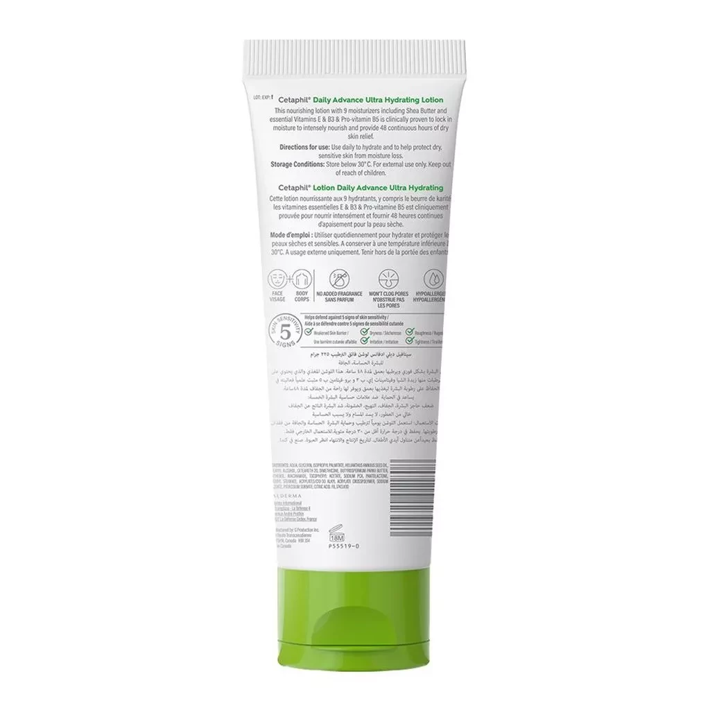 Cetaphil Daily Advance Ultra Hydrating Lotion is suitable for individuals of all ages who have dry or sensitive skin and are looking for intense hydration and moisturization. It is a non-greasy, fragrance-free lotion that is formulated to provide long-lasting moisture to the skin.