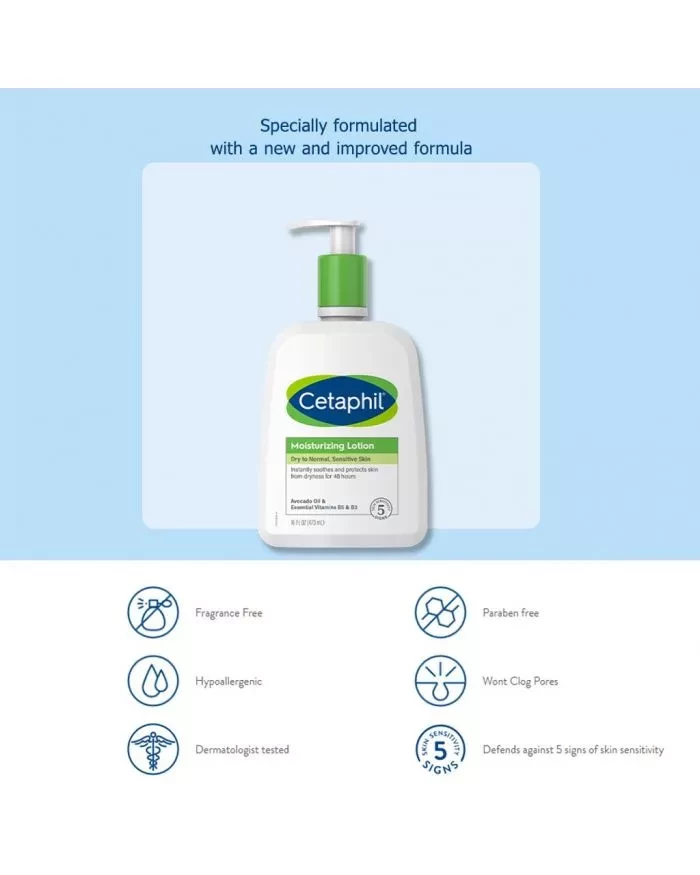 Lightweight and fast absorbing lotion is specially formulated with a new and improved formula containing a dermatologist-backed blend of niacinamide, panthenol, and hydrating glycerine to help improve the resilience of sensitive skin. Enriched with avocado oil, this daily use lotion is clinically proven to instantly soothe sensitive skin and hydrate skin for 48 hours. Defends against 5 signs of skin sensitivity, including a weakened skin barrier, irritation, roughness, tightness and dryness.