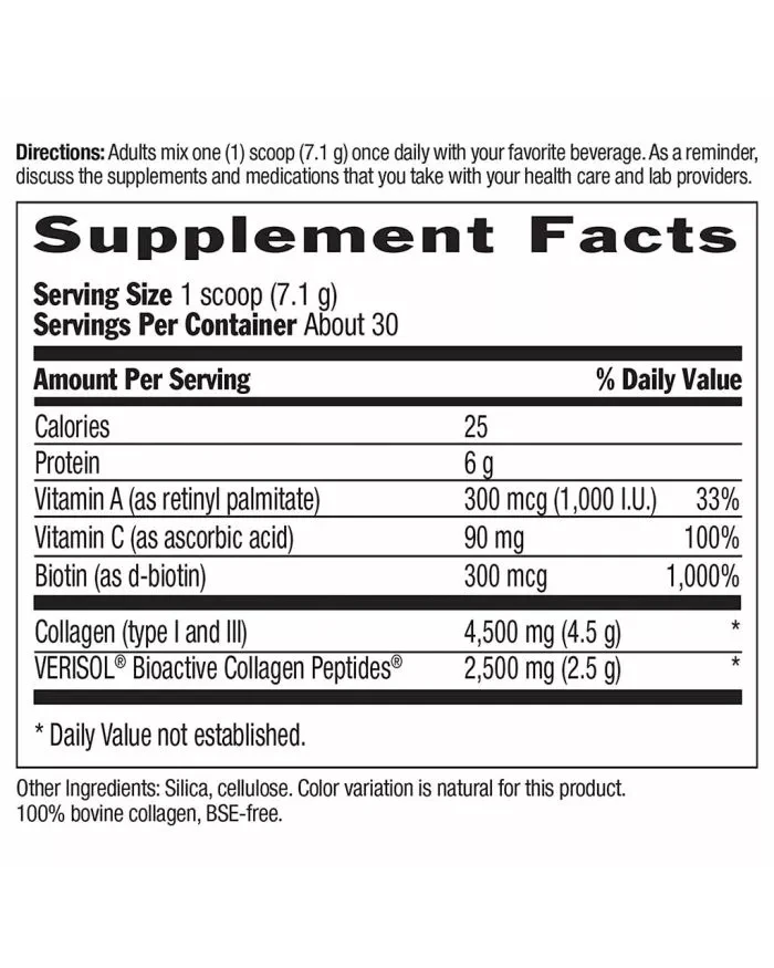 Mix one scoop of Country Life High Potency Maxi-Collagen 7000 Powder into your favorite beverage or recipe.