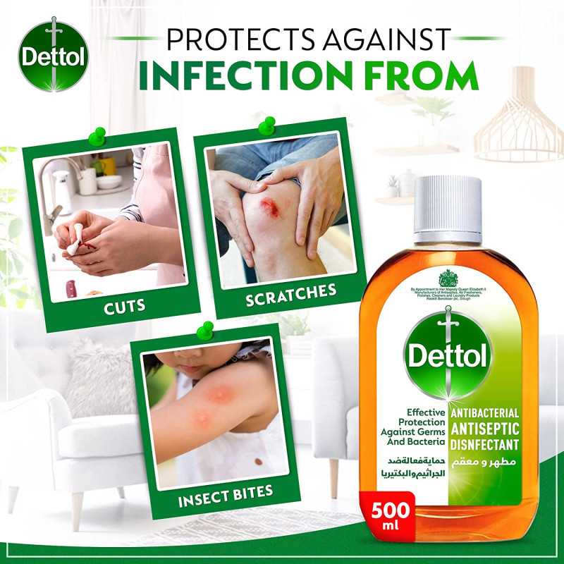 FIRST AID: Antiseptic liquid is dermatologically tested and helps protect against infection from cuts, scratches, and insect bites. It is available on Amazon UAE