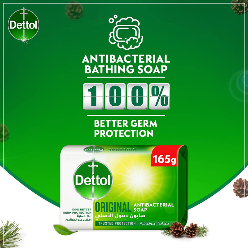 Dettol Original Soap with pine fragrance provides trusted Dettol protection from a wide range of unseen germs. It cleanses and protects your skin for a healthy and refreshing feeling every day.