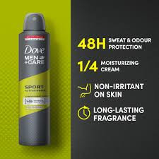 Dove Men+Care is a globally trusted brand known for its high-quality personal care products. The Sport Active+ Fresh 48H Protection Spray is dermatologically tested, ensuring it meets the highest standards of care and effectiveness. It is designed to provide reliable protection and care for your skin while delivering lasting freshness and confidence.