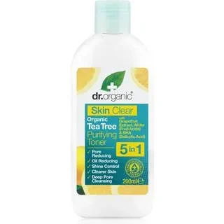 Dr.Organic Skin Clear 5 In 1 Tea Tree Toner 200ml is a multi-action toner designed to purify, balance, and rejuvenate your skin. Formulated with organic tea tree oil, this toner offers five powerful benefits in one product: it deeply cleanses pores, controls oil production, soothes irritation, minimizes the appearance of pores, and promotes a clearer complexion. Enhanced with natural extracts like witch hazel, willow bark, and aloe vera, it effectively removes impurities and excess oil without over-drying the skin. Ideal for oily and blemish-prone skin, this toner leaves your skin feeling fresh, balanced, and revitalized.