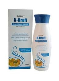 Elegant n-druff shampoo for dandruff solution is enriched with tea tree oil & lemon oil. Tea tree oil & calendula extract being a natural anti bacterial and anti dandruff agent reduces the rate of keratinisation. Hence, prevents appearance of dandruff and relieves scalp irritation. Tea tree oil has an effective treatment for dandruff due to its ability to treat malassezia furfur, the most common cause of the condition.