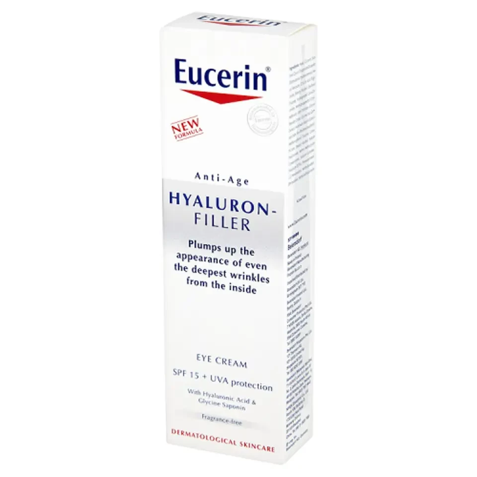 - Recapture and maintain youthful skin with Eucerin® Anti-Age Hyaluron-Filler Eye Cream SPF 15 + UVA Protection, an opthalmologically-tested, anti-ageing formula that targets crow's feet and deep wrinkles in the sensitive eye area whilst protecting the skin from UVB and UVA filters.