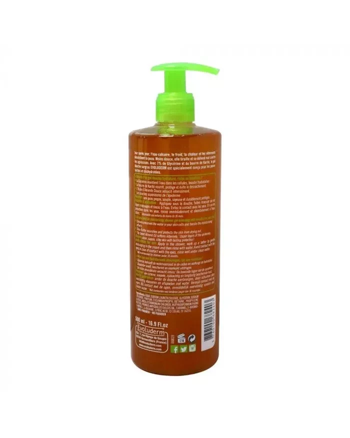 Evoluderm Moistururizing Sugras Shower Gel 500 mL 14239Description:Evoluderm Moistururizing Sugras Shower Gel contains Glycerin which preserves the water in your skin cells and boosts moisturizing effects. With Shea butter which nourishes and protects skin from drying out, Almond oil which keeps the skin moisturized at all times and softens intensely.