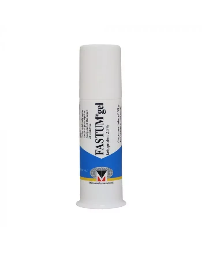 Fastum Gel 50 gm is a topical gel formulation that contains ketoprofen, a nonsteroidal anti-inflammatory drug (NSAID). It is used to relieve pain, inflammation, and swelling in conditions such as sprains, strains, bruises, tendonitis, and osteoarthritis.