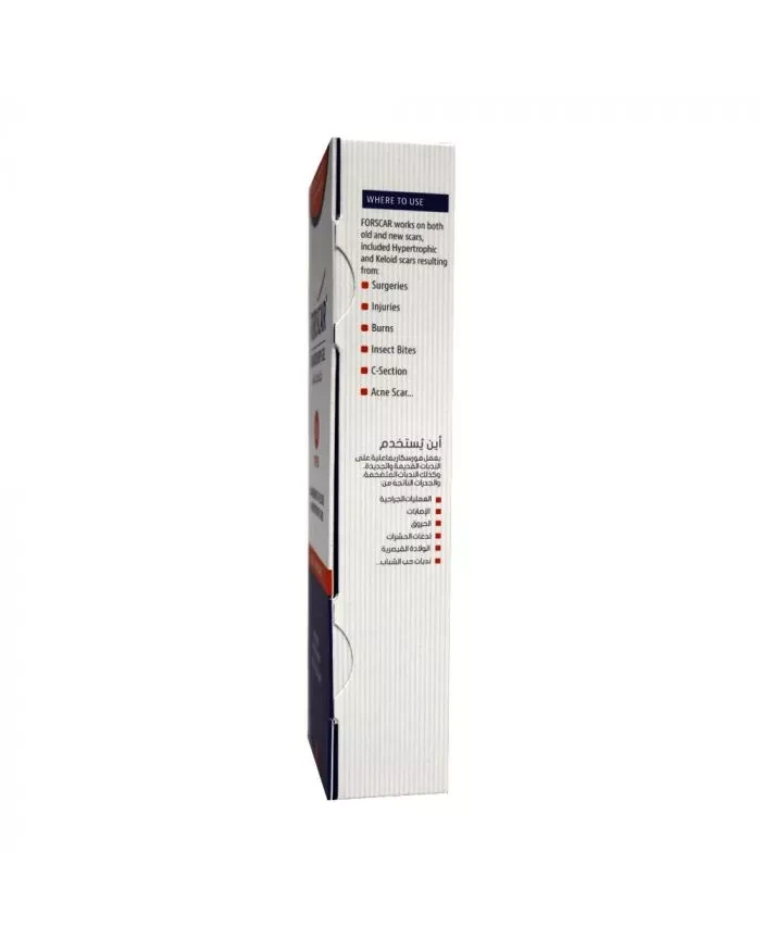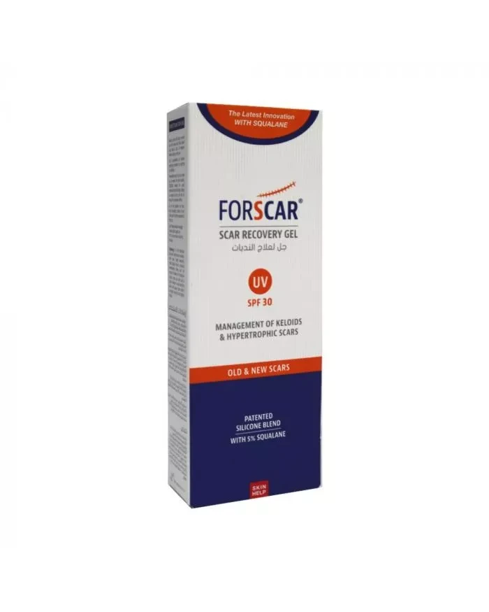 Forscar Scar Recovery UV SPF30 Topical Gel forms a non-tacky, substantive, semi-occlusive, flexible and waterproof barrier with epidermis, which protects the scar from bacterial, chemical and physical invasion. The clinically approved patented Silicone Gel Technology and 5% Olive Oil Squalane inside FORSCAR UV with SPF 30 help prevent the development of abnormal scars and improves the overall appearance of old and new hypertrophic and keloid scars. Provides high protection against discolorations and redness caused by sun. Its flexible film-forming technology is effective on scars even on irregular areas such as the hands, elbows or hairy areas, which are normally difficult to cover.