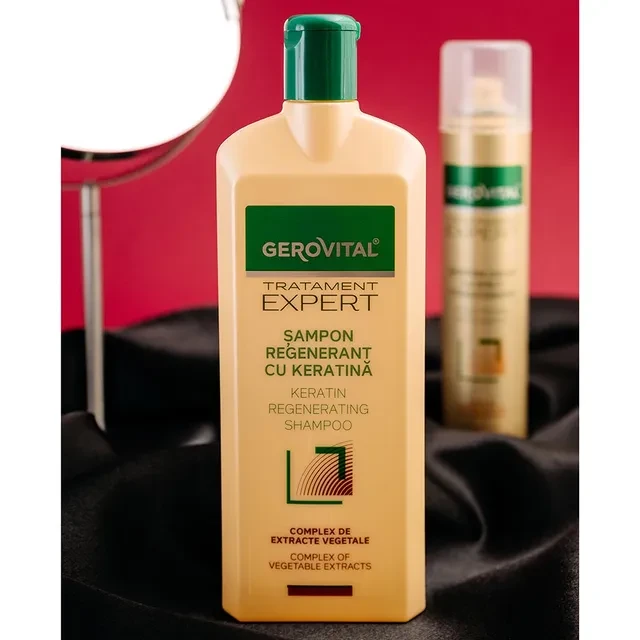 With ingredients such as hydrolysed keratin, Gerovital regenerating shampoo acts directly on the hair restoring the keratin level, a protein that ensures the elasticity of the hair and protects the hair against the destructive effects of external agents. The keratin, vitamins, trace elements and natural extracts that are the basis of this innovative formula, have the role to hydrate the scalp and hair, acting on the entire length of the hair and restoring the neat and smooth aspect.