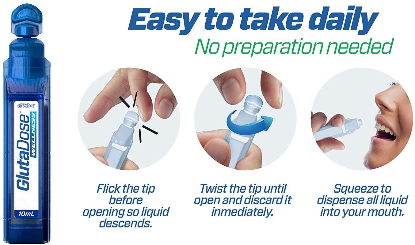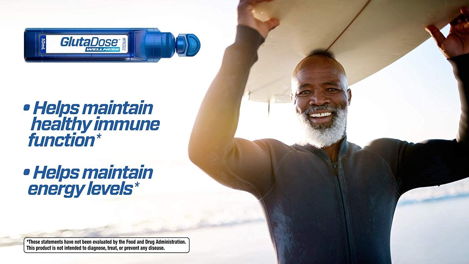 Glutadose Wellness" is a product that combines several ingredients, including glutathione, vitamin C, and zinc, in an oral solution. It is marketed as an immunity booster, detoxifier, and energy supplement. Here's a breakdown of the components and potential benefits: Glutathione (12,000 mg):