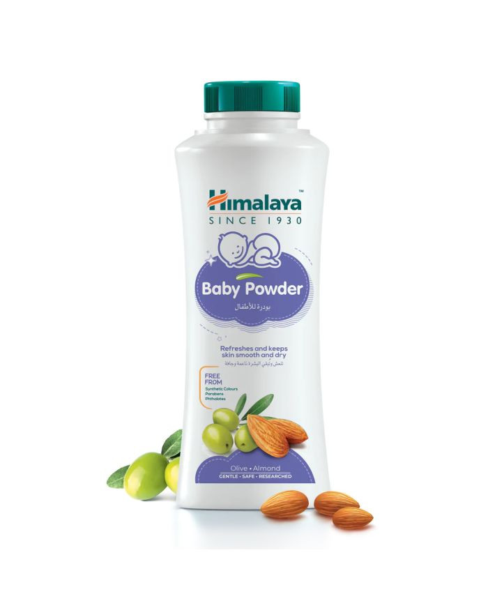 Himalaya Baby Powder With Olive & Almond is fortified with the power of Almond and Olive that keeps the baby's sensitive skin nourished and prevents rashes. Almond and olive nourishes, moisturizes and protects the skin leaving it soft and supple. The baby powder cools the skin by managing excessive sweating. It is tested for mildness and is gentle on baby’s skin. Himalaya's wide range of baby products are tested for mildness that maintain the fragile balance of your baby's delicate and sensitive skin. Himalaya offers skincare products that soothes, nourishes and protects your baby's delicate skin. All Himalaya baby products are gentle, safe and researched by dermatologists.