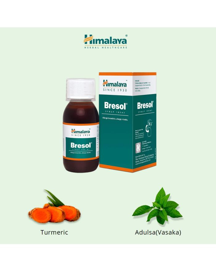Himalaya Bresol Syrup has natural ingredients which synergistically act to provide symptomatic relief in allergic respiratory conditions. Its antihistaminic property manages symptoms associated with respiratory disorders. The mucolytic (reducing the viscosity of mucus) and bronchodilatory (decreasing resistance in the breathing airways) properties of Bresol are helpful in liquefying and relieving nasal and bronchial congestion. Its antimicrobial action combats infections caused by gram-positive and gram-negative bacteria.