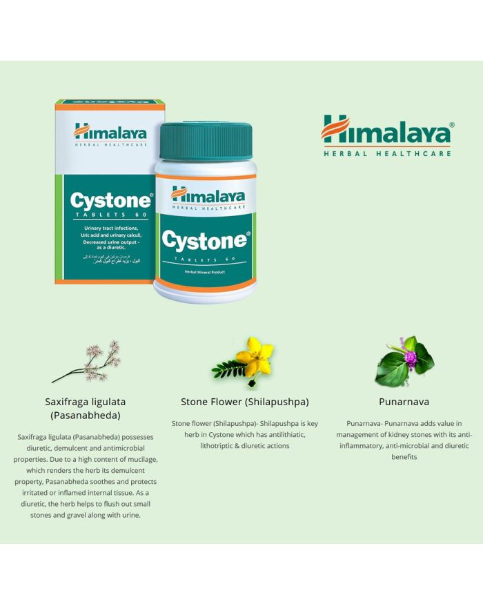Himalaya Cystone Tablets are a herbal formulation primarily used to support kidney and urinary tract health.