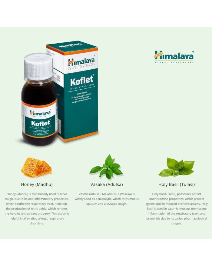 Himalaya Koflet Cough Syrup is a herbal formulation primarily used to provide relief from cough and throat irritation is suitable for adults and childrens.