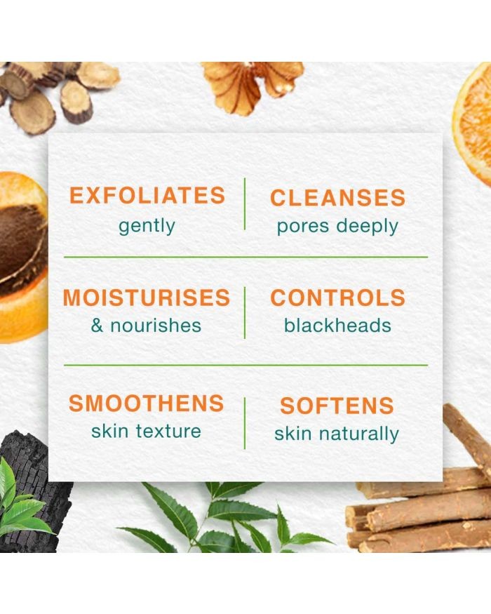 Apply the Himalaya Tan Removal Face Scrub With Orange Peel And Oatmeal in a circular motion on the face and neck.