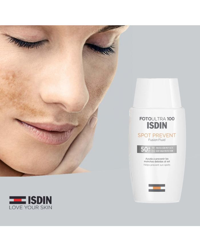 Isdin FotoUltra 100 Spot Prevent with SPF50+ is very high protection that slows down the formation of skin pigmentation and alterations due to sun. Blends to the skin for pleasant daily application.