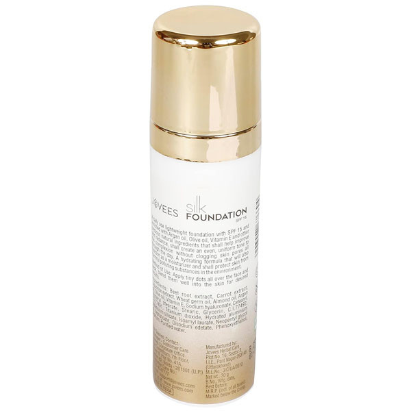 Jovees Silk Foundation with SPF 15 is a premium makeup product designed to provide flawless coverage and a velvety-smooth finish. This lightweight foundation is enriched with precious silk extracts, known for their skin-nourishing properties. It effectively conceals imperfections, evens out the skin tone, and gives the skin a natural radiance. The added benefit of SPF 15 offers protection from harmful UV rays, making it an ideal choice for daily wear.
