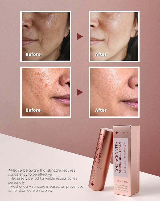 Revitalize your skin with the K-Secret Collagen Vita Secret Anti-Wrinkle & Brightening Multi-Balm. This powerhouse balm combines collagen and essential vitamins to diminish wrinkles, enhance skin elasticity, and promote a radiant complexion. Perfect for daily use, it's your secret to youthful, glowing skin.