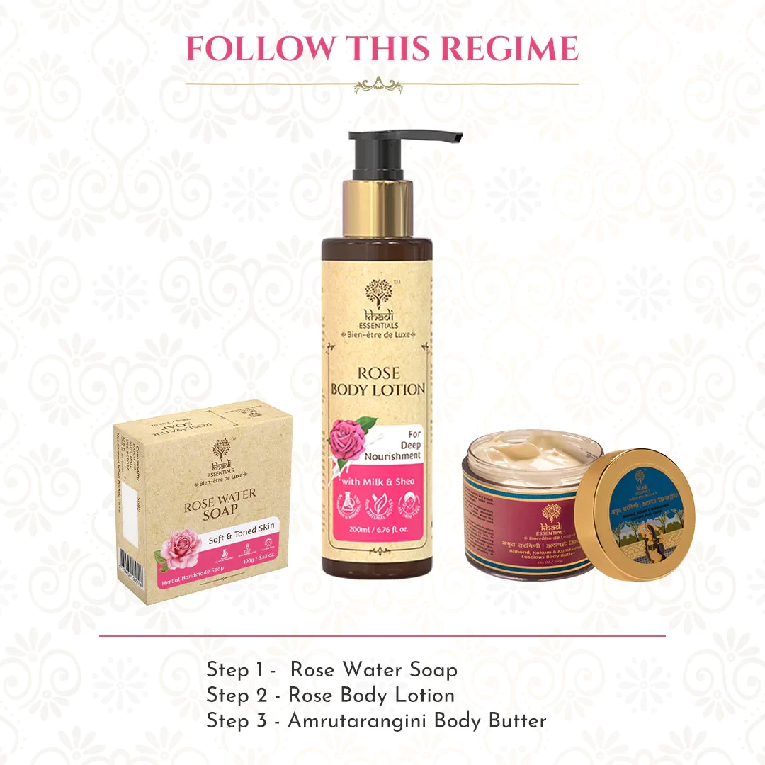 Elevate your bathing experience with Khadi Essential Rose Water Soap, where the essence of roses meets the purity of nature for radiant and refreshed skin.