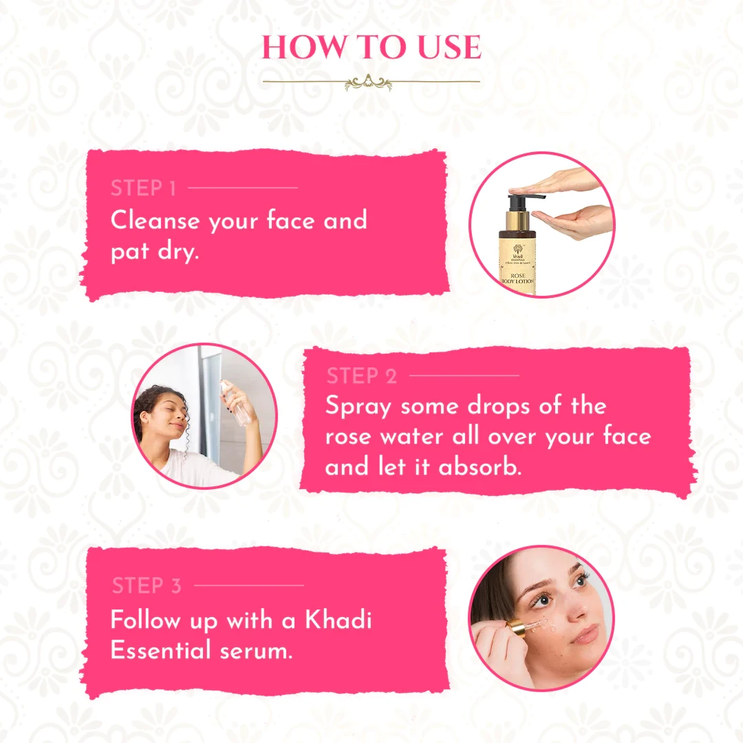 Versatility: Khadi Essentials Wild Rose Facial Water serves multiple purposes, acting as a toner, face pack enhancer, and refreshing mist, offering versatility in your skincare regimen.
