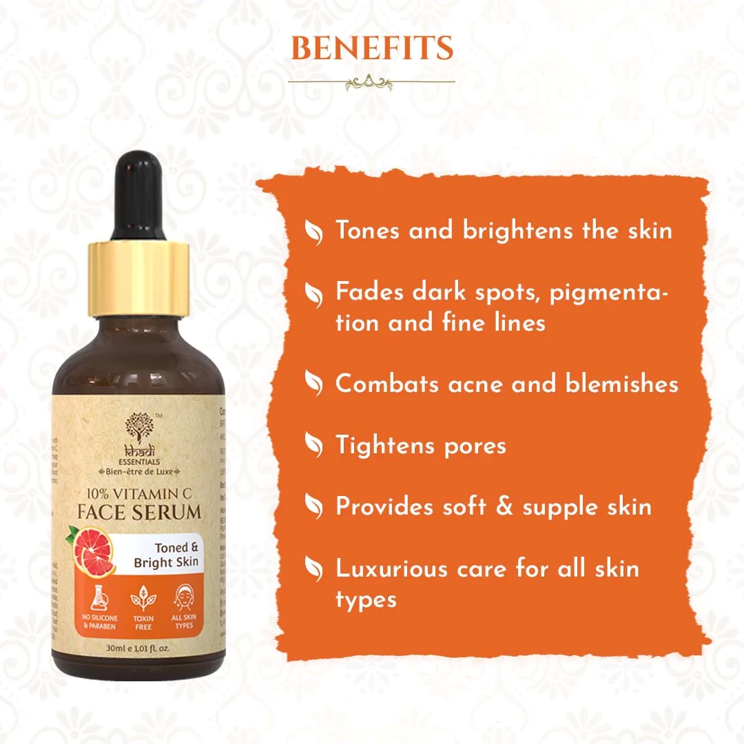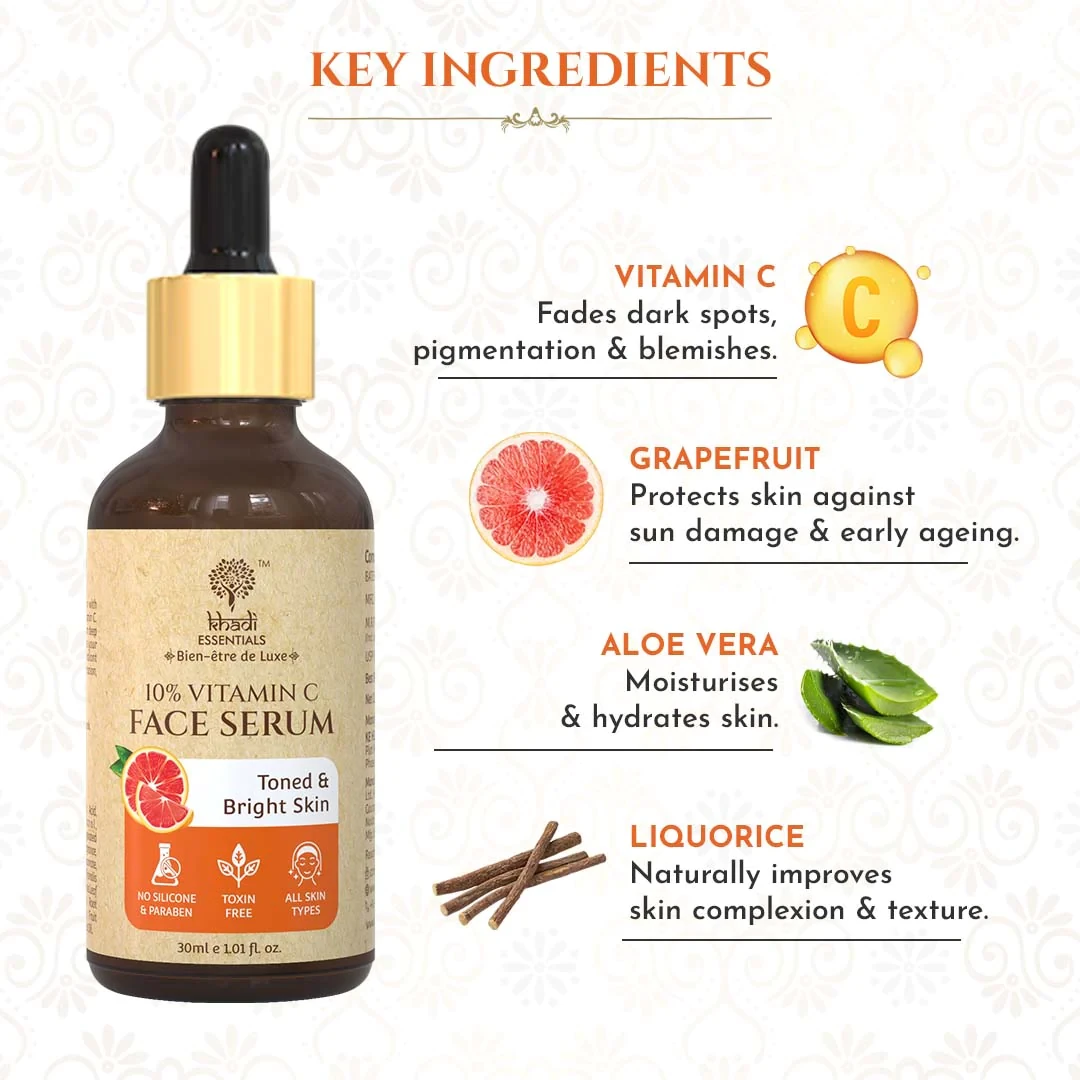 Khadi Essentials Vitamin C Face Serum with Grapefruit is a rejuvenating elixir designed to invigorate and nourish your skin. This serum combines the potent benefits of Vitamin C and the refreshing essence of Grapefruit to create a holistic skincare solution. Elevate your skincare routine with this luxurious serum that promotes a radiant, even-toned complexion and enhances the natural vitality of your skin.